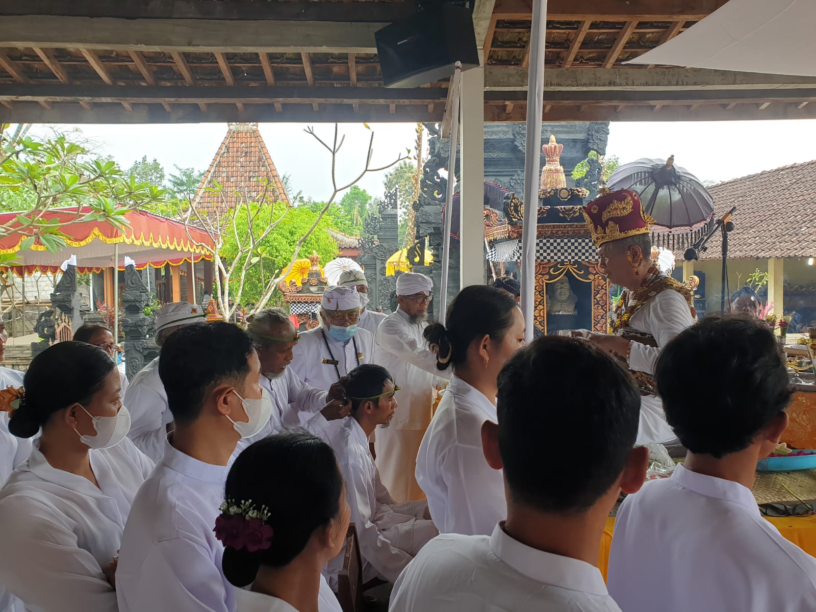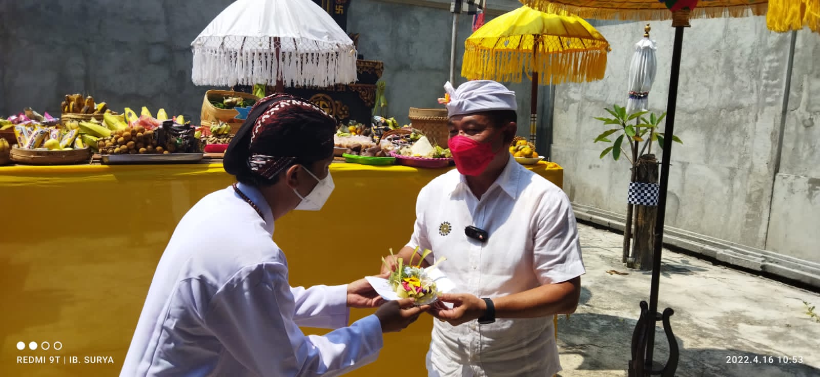Beliau Ida Pandita Mpu Agra Dwijananda, sulinggih yang berasal dari Serang Banten, muput Karya Agung Piodalan Pura Bhakti Widhi dibantu Pinandita Sanggraha Nusantara (PSN) se-Jabodetabek yang hadir sejak Jumat siang (15 April 2022).